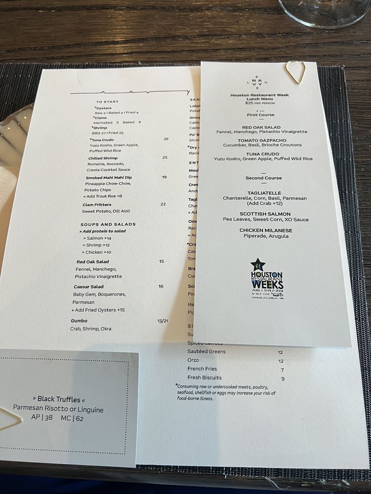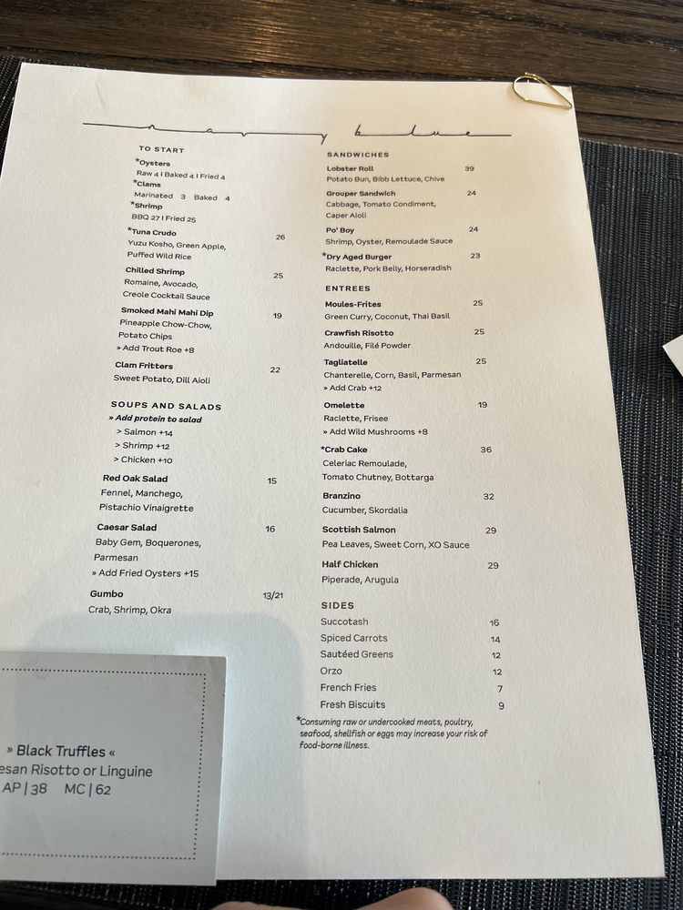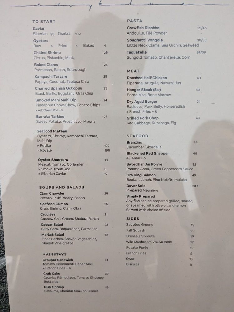 Navy Blue, a seafood restaurant in Houston, offers a range of amenities including reservation options, takeout, delivery, and wheelchair accessibility. The ambiance is described as casual, trendy, romantic, classy, and upscale, with moderate noise levels. Customers rave about the attentive service and inventive menu offerings. Highlights include the Pear Pressure and Amoxicillin mocktail drinks, homemade Caesar salad with large croutons, buttery biscuits, caramelle pasta with crab, and smoked Mahi Mahi dip with pineapple chow-chow. Desserts like key lime pie and chocolate coulant are also highly recommended. While some reviewers note the portion sizes could be larger, the overall dining experience at Navy Blue is praised for its delicious food, attention to detail, and welcoming atmosphere.